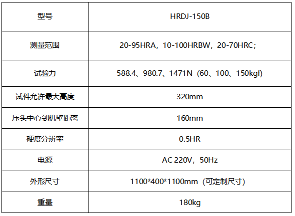 HRDJ-150B電動加高加長洛氏硬度計產品介紹1、產品機身部分由澆鑄工藝一次成型,并經過了長時間的時效處理。相對于拼板工藝,長期使用形變